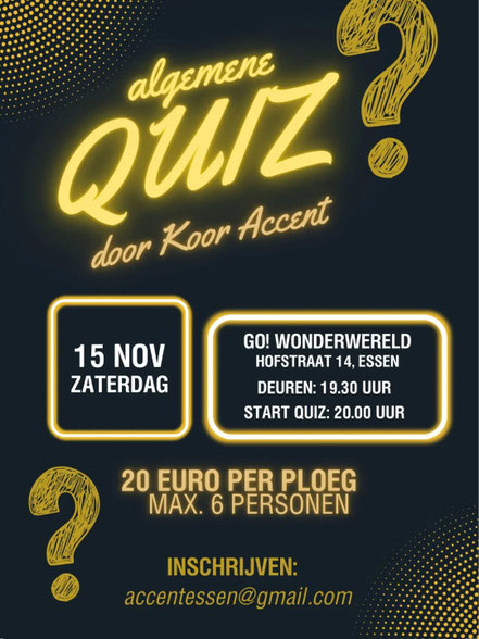 Start Quiz: 20.00 Locatie: Go! wonderwereld